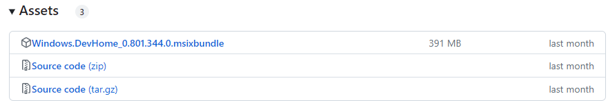 Trinn 2:Fra Assets-området, bla ned og last ned Dev Home-installasjonsprogrammet.