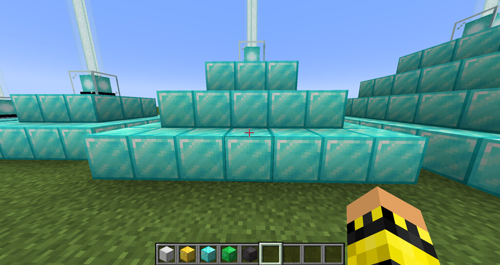 På toppen av dette plasseres beacons i en 2×3-konfigurasjon i midten. Dette gir alle seks beacon-effekter fra en enkelt struktur ved å bruke færrest mulig ressurser.