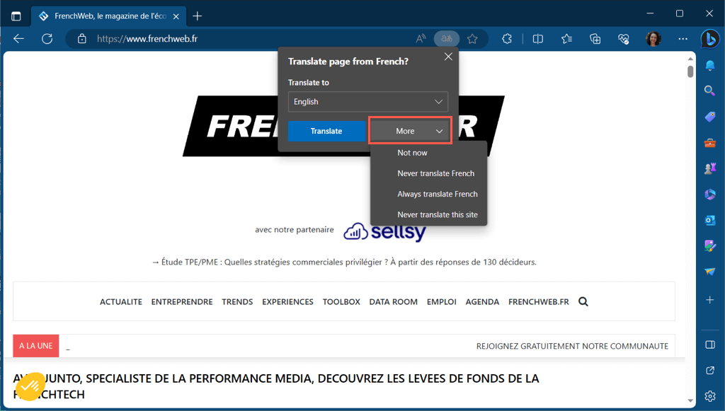 Med den innebygde oversetteren i Edge kan du også oversette deler av en nettside.