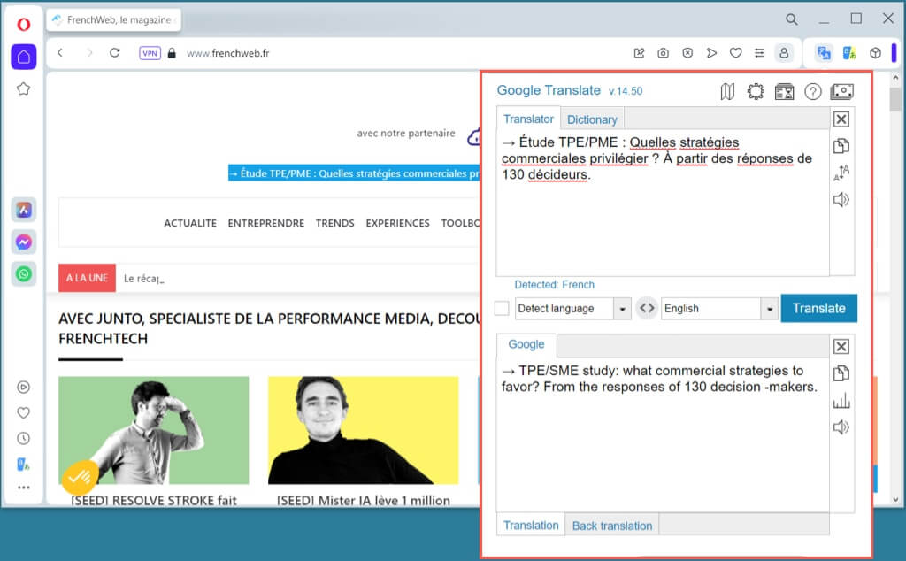 Når du har installert gratisOversetterutvidelse, kan du raskt oversette en hel nettside eller en bestemt del.
