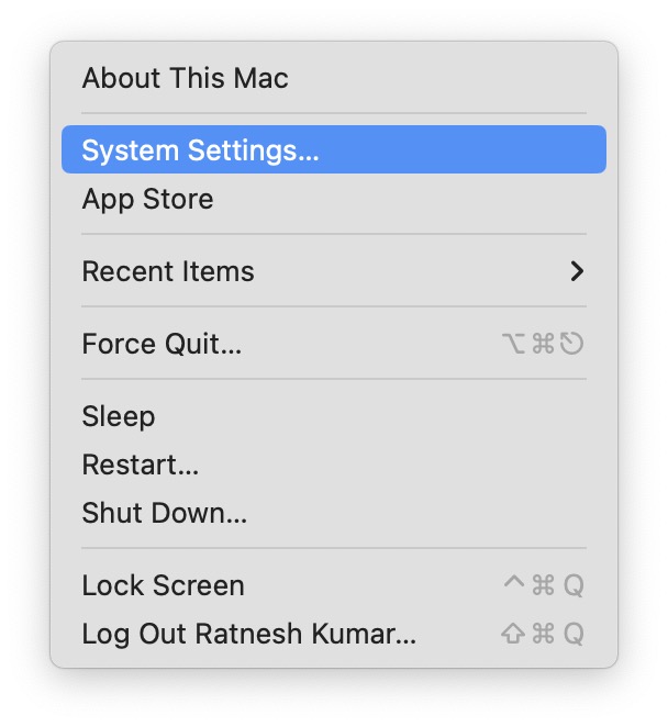 3. VelgeSysteminnstillingerfra rullegardinmenyen.