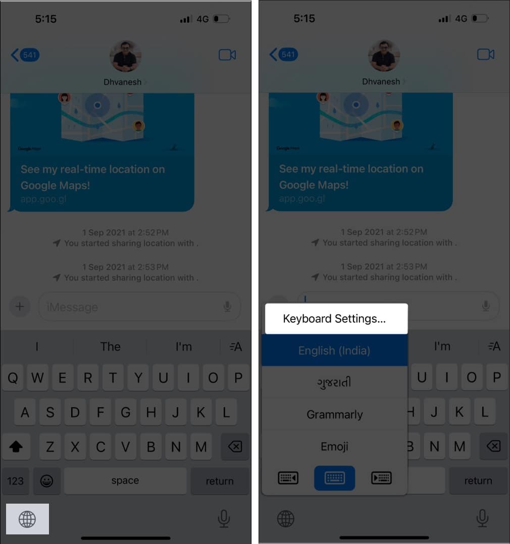 Du kan bare trykke og holdeklodenikonet nederst til venstre på tastaturet og velgTastaturinnstillinger. Dette vil omdirigere deg direkte til tastatursiden i Innstillinger-appen.