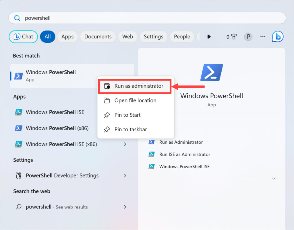 1.StartWindows PowerShell nyttepå din PC eller bærbare datamaskin med administrative rettigheter.