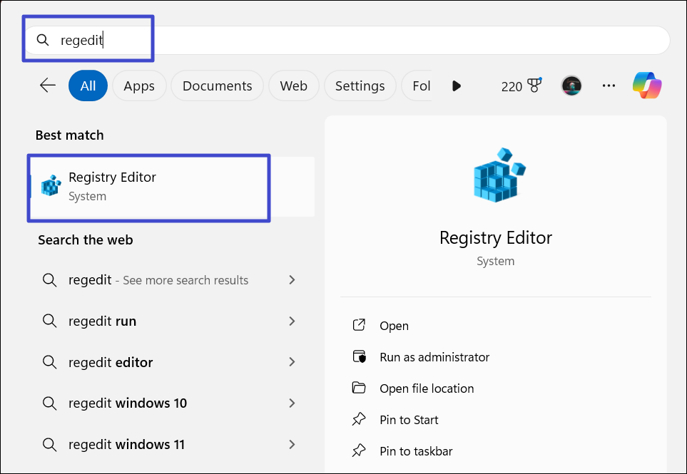 Metode 4: Bruk Windows-registeret for å aktivere minneintegritet