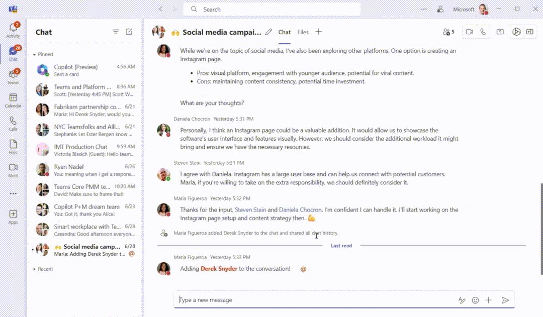 - Chatoppsummering: Copilot kan generere sammendrag av chat-samtaler, fremheve hovedpunkter og handlingspunkter. Dette kan hjelpe brukere raskt å få med seg en samtale eller få en klar oversikt over hva som ble diskutert.