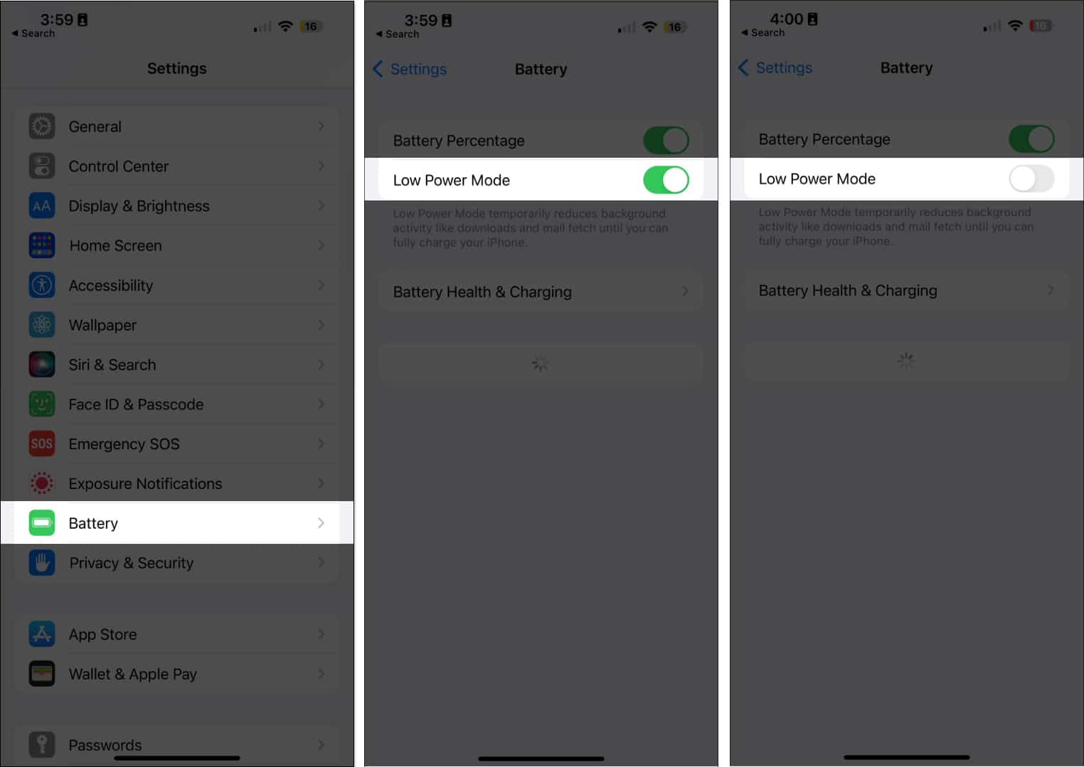 Gå tilInnstillinger→Batteri→ VeksleLavstrømsmodusav.