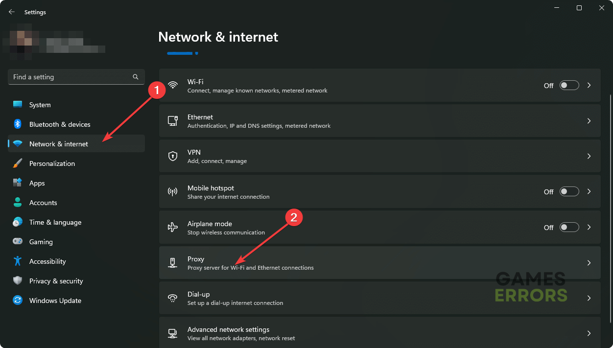 - IWindows-innstillinger, gå tilNettverk og Internettog klikk på Proxy.