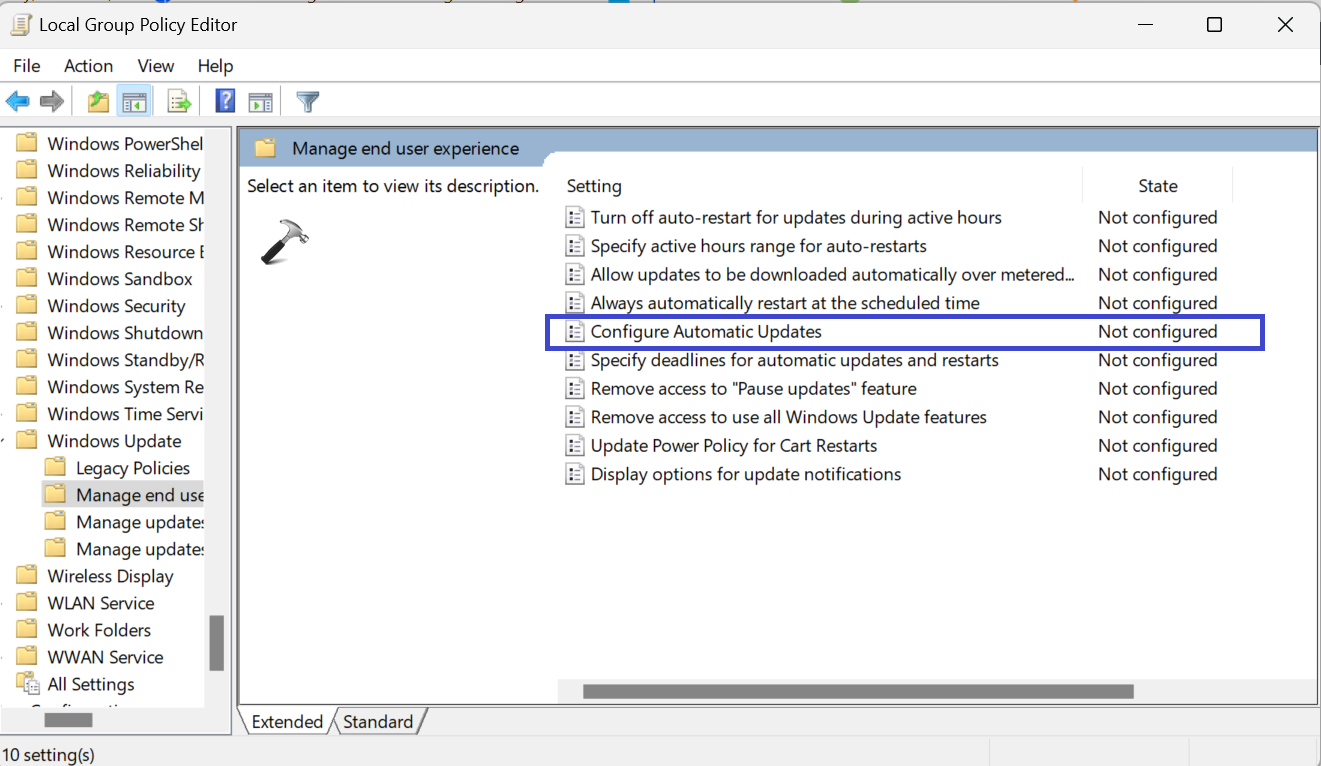 Group Policy Editor kan brukes til å konfigurere et bredt spekter av Windows-innstillinger. Følg trinnene nedenfor for å konfigurere innstillingene for automatiske oppdateringer ved å bruke Local Group Policy Editor: