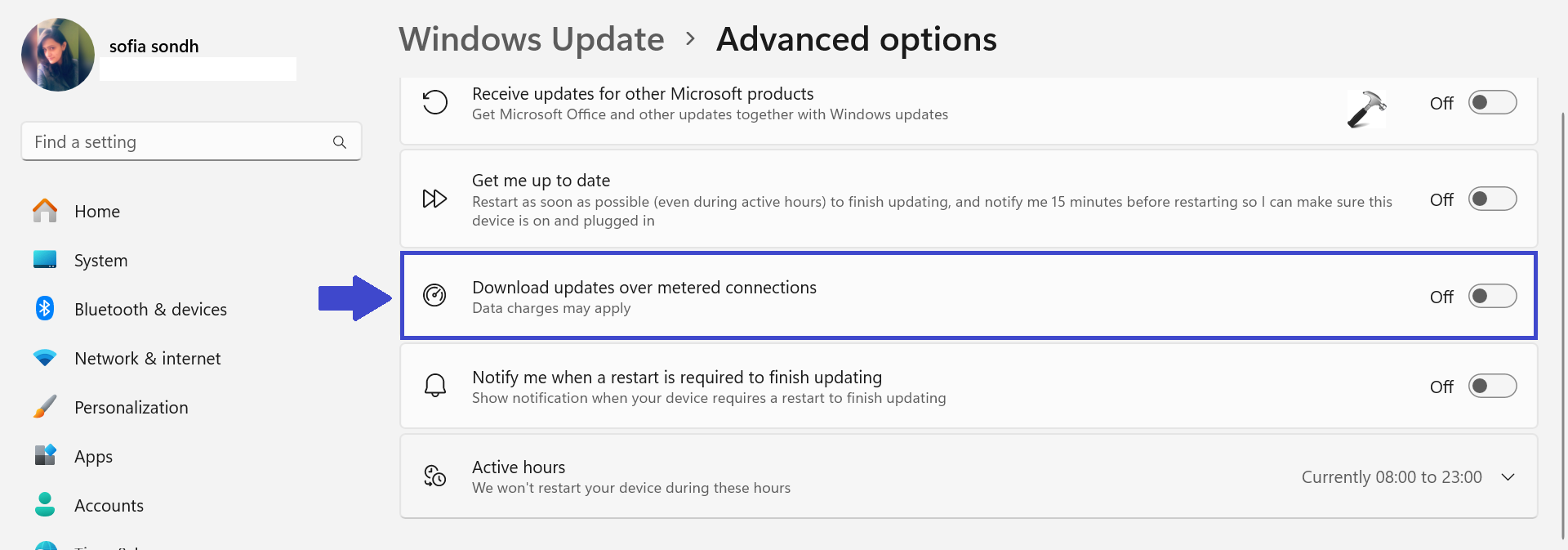 3. Slå av bryteren ved siden av "Last ned oppdateringer over oppgitte tilkoblinger" alternativet.