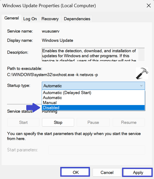 Hvis du vil aktivere de automatiske oppdateringene på Windows 11, kan du følge de samme trinnene og velge "Aktiver" under "Oppstartstype" alternativet.