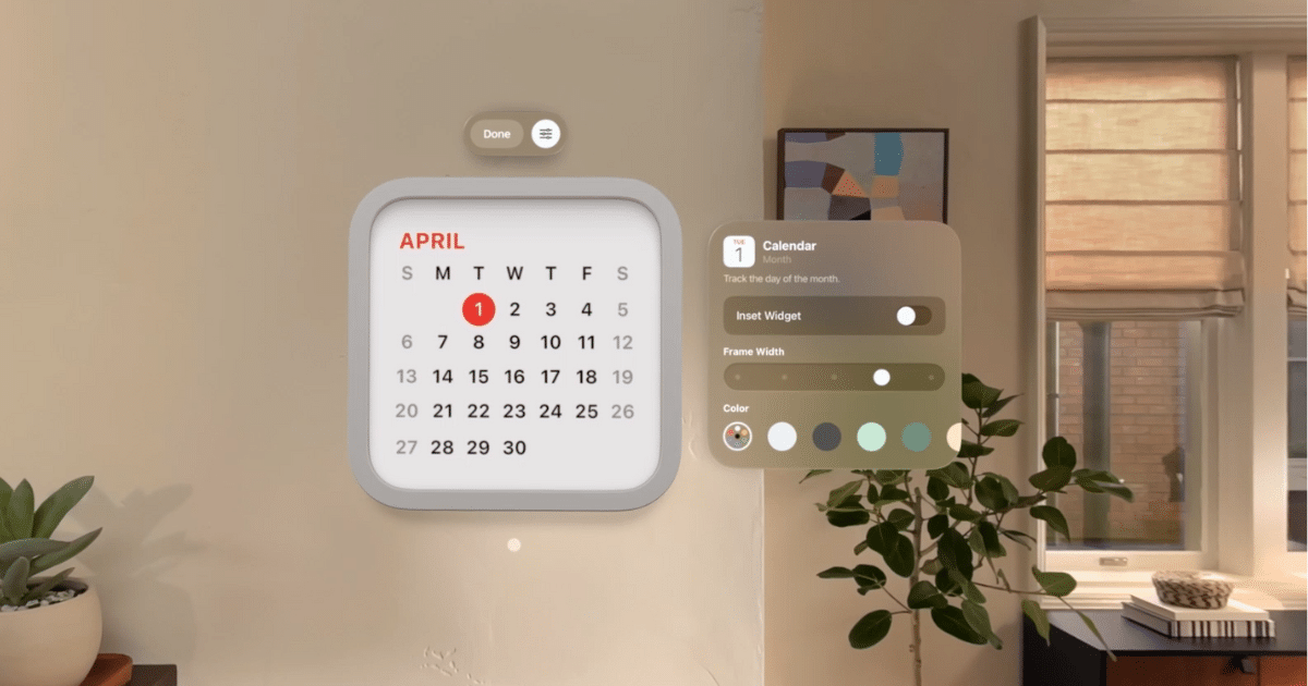 Widgets er ikke lenger begrenset til flatskjermer. I visionOS 26 blir de romlige objekter du kan plassere hvor som helst i det fysiske rommet ditt, enten det er en klokke på veggen eller et fotovindu.