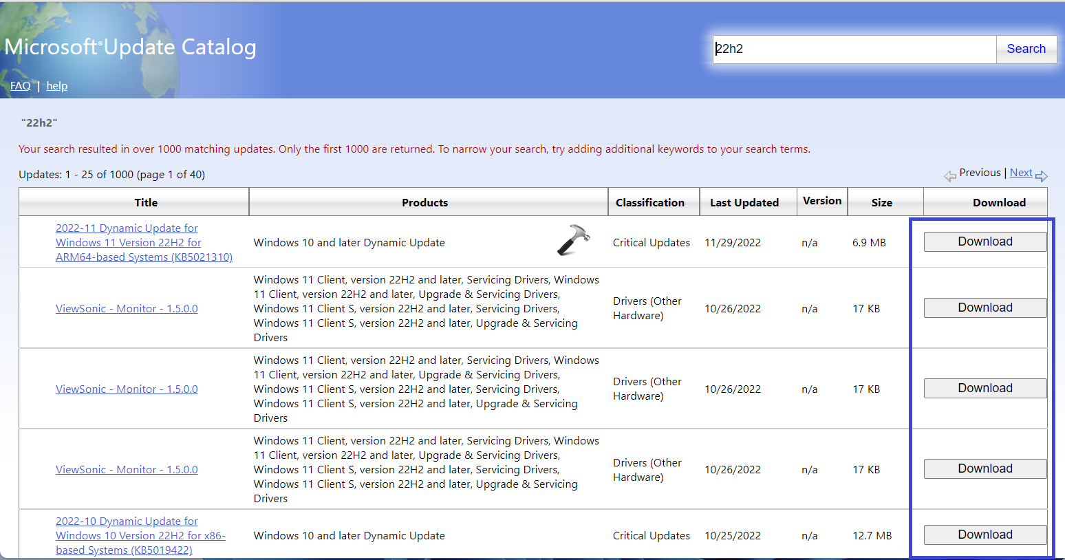 2. Besøk nåMicrosoft Update-katalogside. Det bør starte med KB og noen tall.