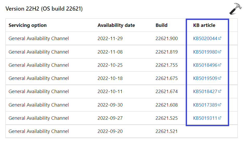 1. Sjekk Microsofts nettsted for oppdateringshistorikk for å finne oppdateringskodenummeret.