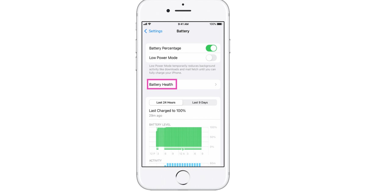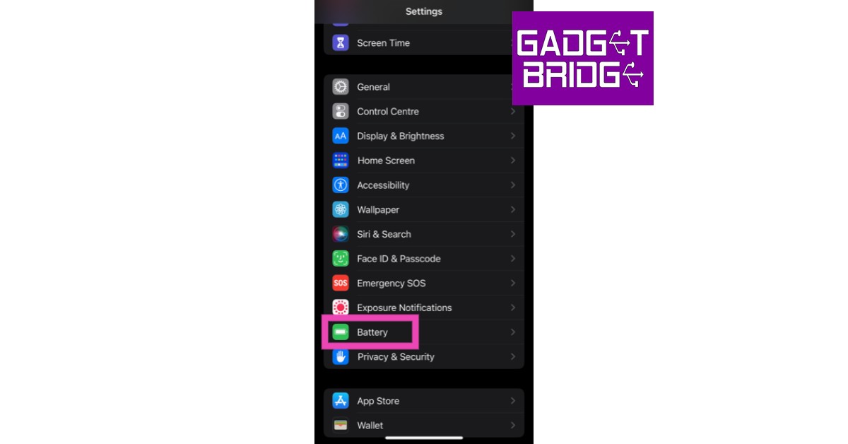 Trinn 1:Gå tilInnstillingerog velgBatteri.