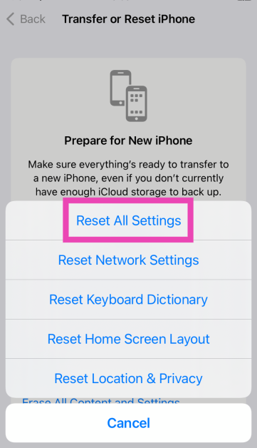 Trinn 4:VelgeTilbakestill alle innstillinger.