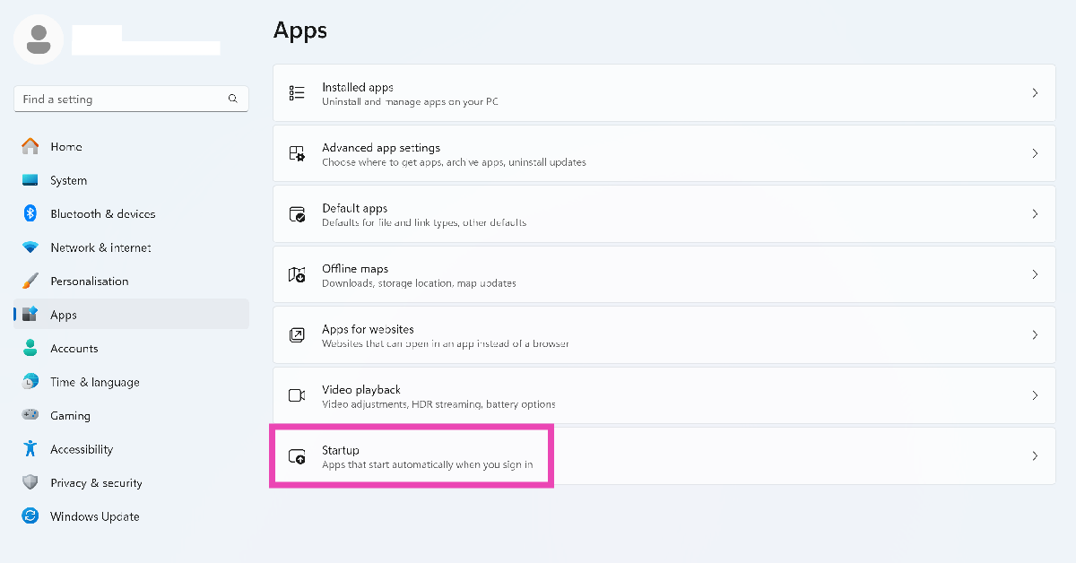 Gå tilInnstillinger>Apper>Oppstartog slå av vippebryteren ved siden av appen du ikke vil starte ved oppstart.