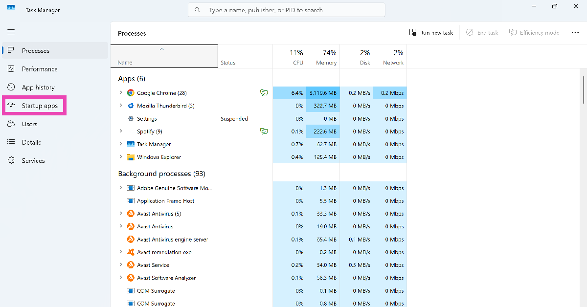 Hvordan slår jeg av programmer ved oppstart i Windows 11?