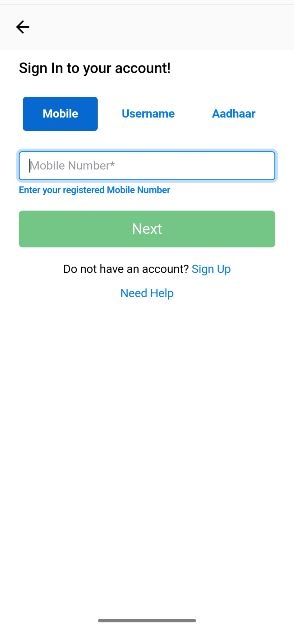 Trinn 2: Logg påved å bruke ditt mobilnummer, brukernavn eller Aadhar.