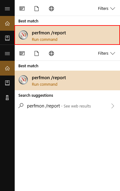 Skriv innperfmon /rapporti Windows-søkeboksen og trykk enter.