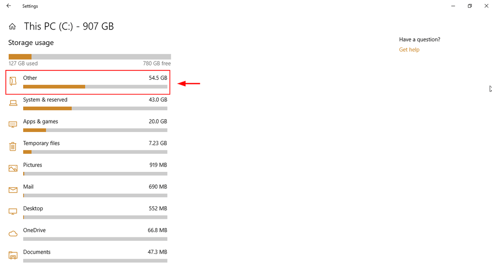 Trinn 3: Velg enMappefra de som dukker opp.Midlertidige filer, apper og spill og anneter vanligvis blant kategoriene som tar mest plass. Fortsett å klikke til du kommer til en mappe iWindows Utforsker. Slett de aktuelle filene ved å velge dem og klikkeslette.