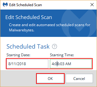 Merk: Denne innstillingen kan være forskjellig avhengig av antivirusprogramvaren du bruker.Trinn 3: Endre klokkeslettet og datoen for skanningen til din bekvemmelighet, samt frekvensen, hvis du får muligheten.
