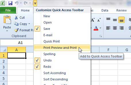 Så følg prosedyren nedenfor for å lære hvordan du legger til en forhåndsvisningssnarvei i Excel 2010.