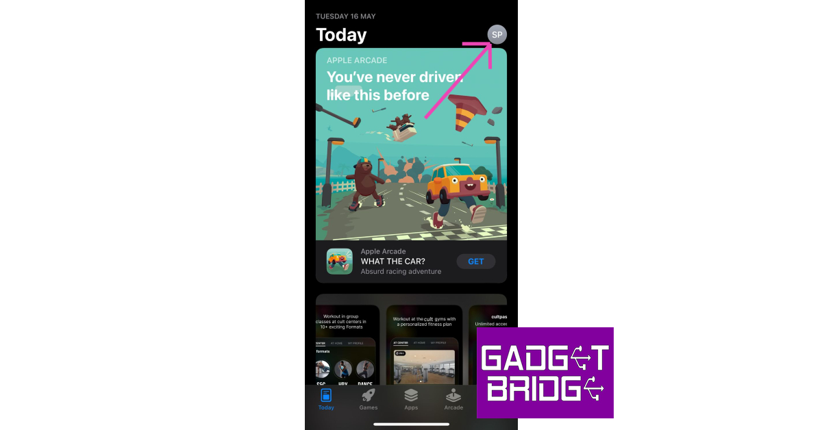 Trinn 1:Start App Store på iPhone og trykk på profilikonet øverst til høyre på skjermen.