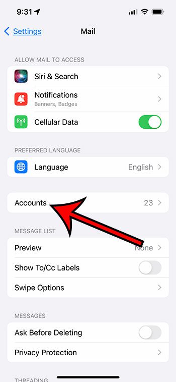 Hvis du allerede har en e-postkonto på din iPhone, vil den vise antall kontoer her.