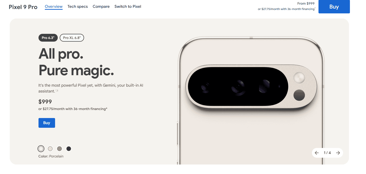 Sammenligningstabell for Pixel 9 vs Pixel 9 Pro