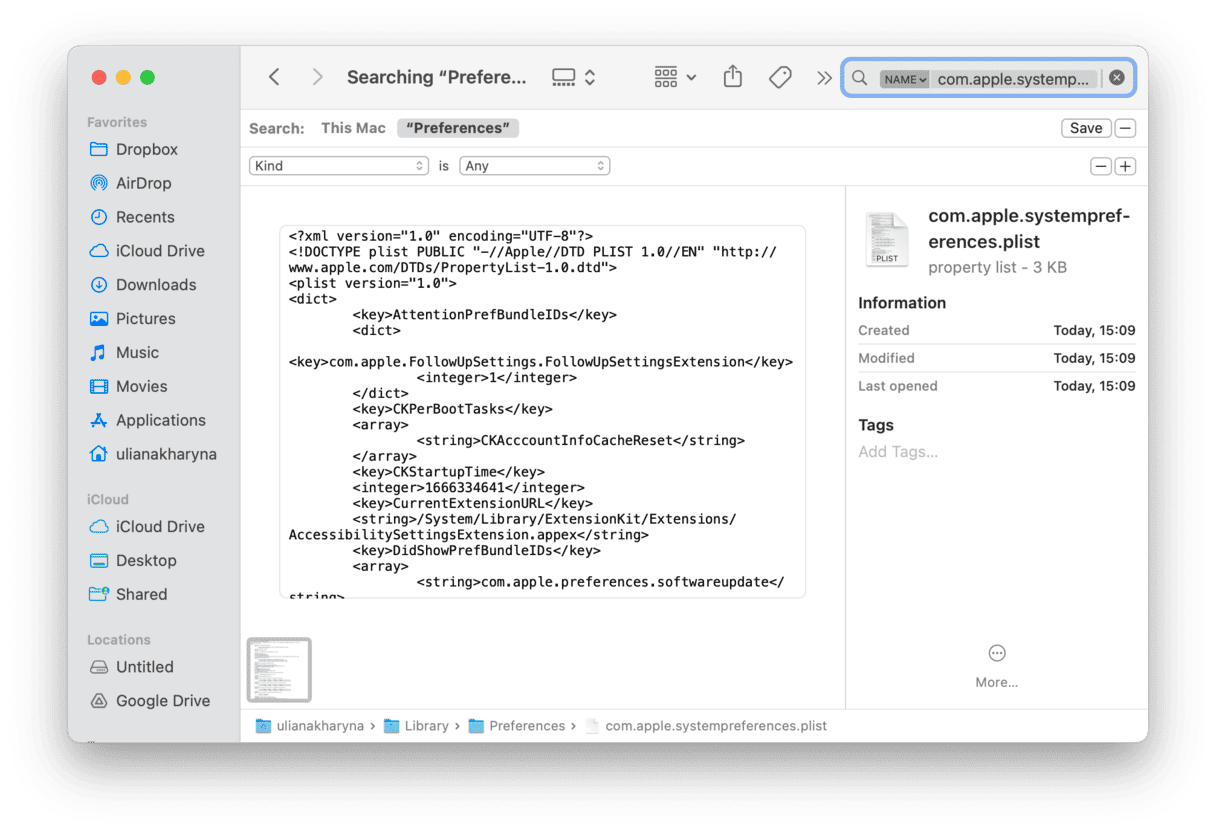 - Finn følgende fil: com.apple.systempreferences.plist