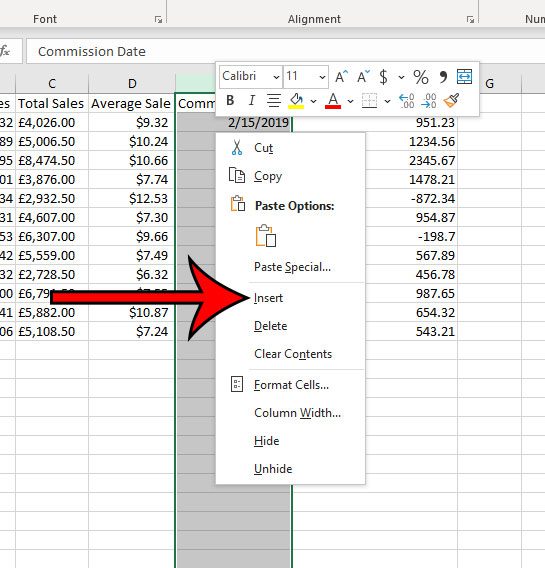 Vår veiledning nedenfor kommer til å vise deg en enkel metode for å plassere markøren på det punktet i regnearket hvor du ønsker å inkludere en hel kolonne med tomme celler, og bruk deretter et av alternativene på hurtigmenyen for raskt å legge til den nye kolonnen og flytte eksisterende data tilsvarende.