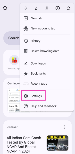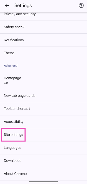 Trinn 3:Trykk påNettstedsinnstillinger.