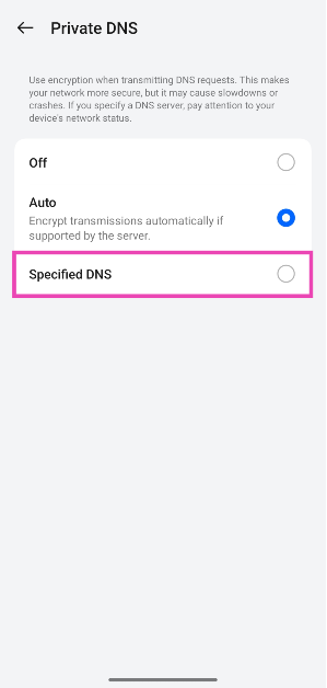 Trinn 2:Trykk påPrivat DNS.