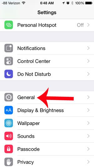 Trinn 2: Rull ned og velgGeneralalternativ.
