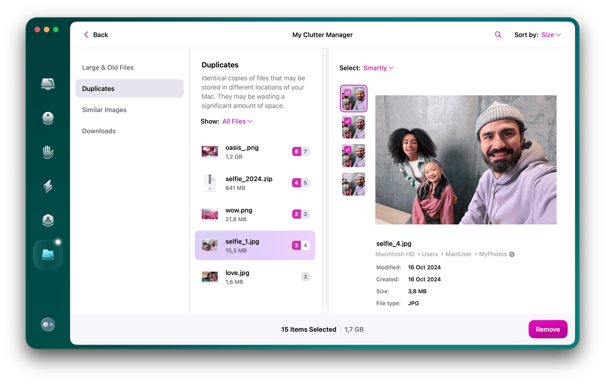 Å søke manuelt krever definitivt litt tid og tålmodighet. Så hvis du starter denne prosessen og innser at du kanskje har bitet av deg litt mer enn du kan tygge, bør du sjekke ut CleanMyMac for å skanne fotobiblioteket ditt og hjelpe deg med å fjerne duplikatene raskt.