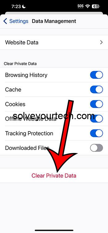 Rull ned i "Innstillinger"-menyen til du finner alternativet "Slett private data" og velg det.