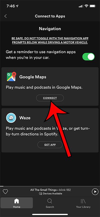 Guiden vår fortsetter nedenfor med tilleggsinformasjon om hvordan du kobler Spotify til Google Maps, inkludert bilder av disse trinnene.