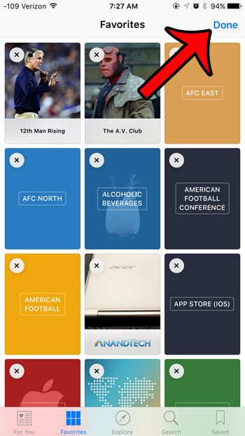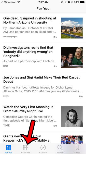 Trinnene i denne artikkelen ble utført med en iPhone 6 Plus, i iOS 9. Nyheter-appen ble ikke inkludert med iOS før versjon 9, så den vil ikke være på enheten din hvis du kjører en iOS-versjon som er lavere enn det. Du kan klikke her for å lære hvordan du sjekker iOS-versjonen din.