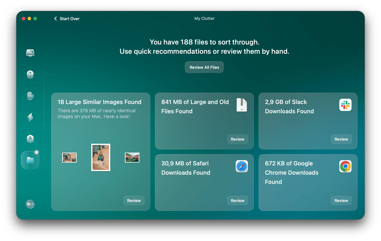 En annen måte jeg holder min organisert på er med CleanMyMac. Den har to funksjoner jeg ikke kan leve uten. Først er det Cleanup, som skanner hele systemet mitt på sekunder, og deretter My Clutter, som er perfekt for å skure glemte filer og mapper på en ekstern enhet. My Clutter-funksjonen fant til og med et duplikat Final Cut-prosjekt som spiste 11 GB på reise-SSDen min. Jeg ville ikke ha sett det i Finder; den ble begravet i en backup-mappe; her er hvordan du bruker det:
