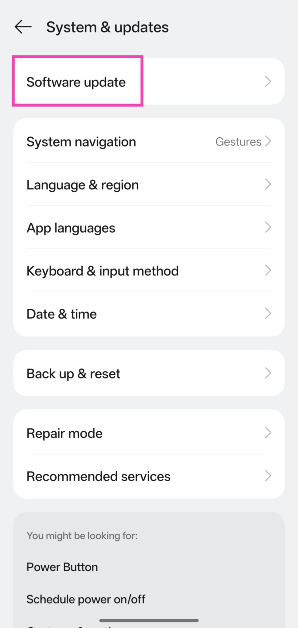 Trinn 1:Gå tilInnstillingerog velgSystem og oppdateringer.