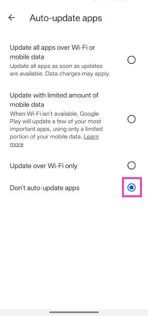 Trinn 4:VelgeIkke oppdater apper automatisk.