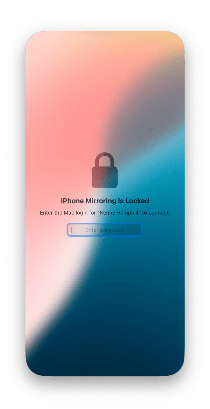 - Skriv inn Macens påloggingspassord i tekstboksen i iPhone Mirroring-appen.