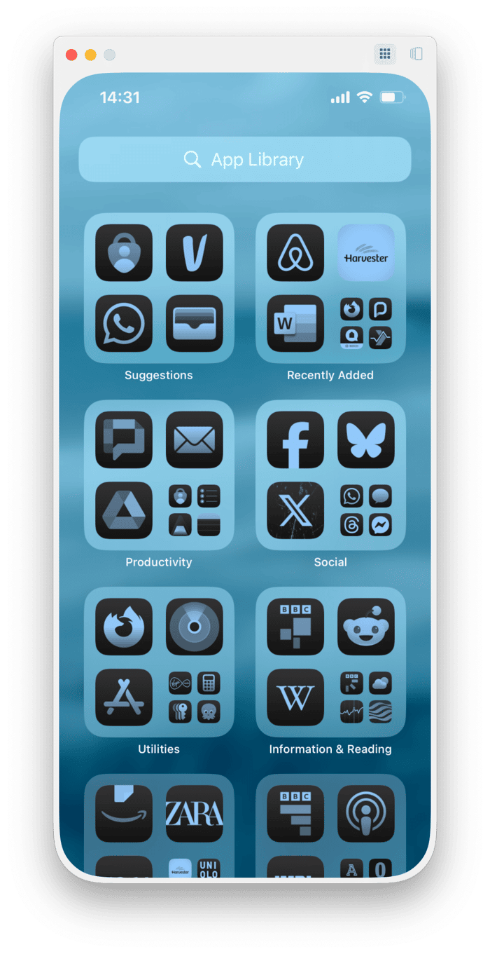 - Du bør nå se iPhone-hjemmeskjermen i iPhone Mirroring-appen.