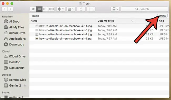 Trinn 3: Klikk påTøm søppelfor å slette filene i papirkurven permanent.