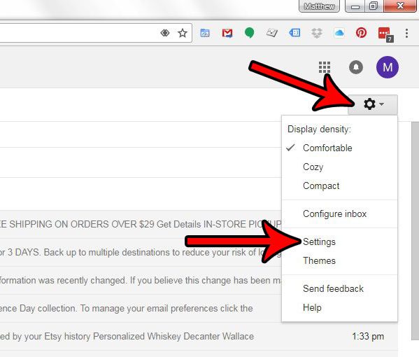 Trinn 2: Klikk på tannhjulikonet øverst til høyre i vinduet, og velg deretterInnstillingeralternativ.