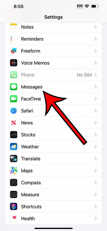 Guiden vår fortsetter nedenfor med tilleggsinformasjon om antall tekstmeldingskarakterer på en iPhone 14, inkludert bilder av disse trinnene.