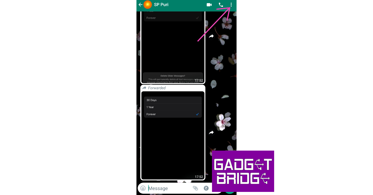 Trinn 4:Trykk "Mer" og velg deretter "Eksporter chat".