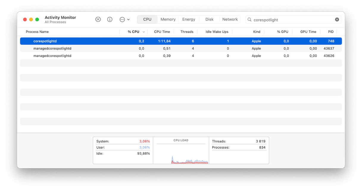 corespotlightd er en prosess som kjører i bakgrunnen og indekserer filer for Spotlight. Den gjennomsøker Mac-en – minus eventuelle mapper du har valgt å ekskludere – og samler informasjon om filene som er lagret på den. Uten det ville Spotlight ikke returnert noen resultater når du søker etter filer på Mac-en.