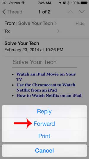 Vår veiledning fortsetter nedenfor med ytterligere diskusjon om videresending av e-poster på en iPhone.