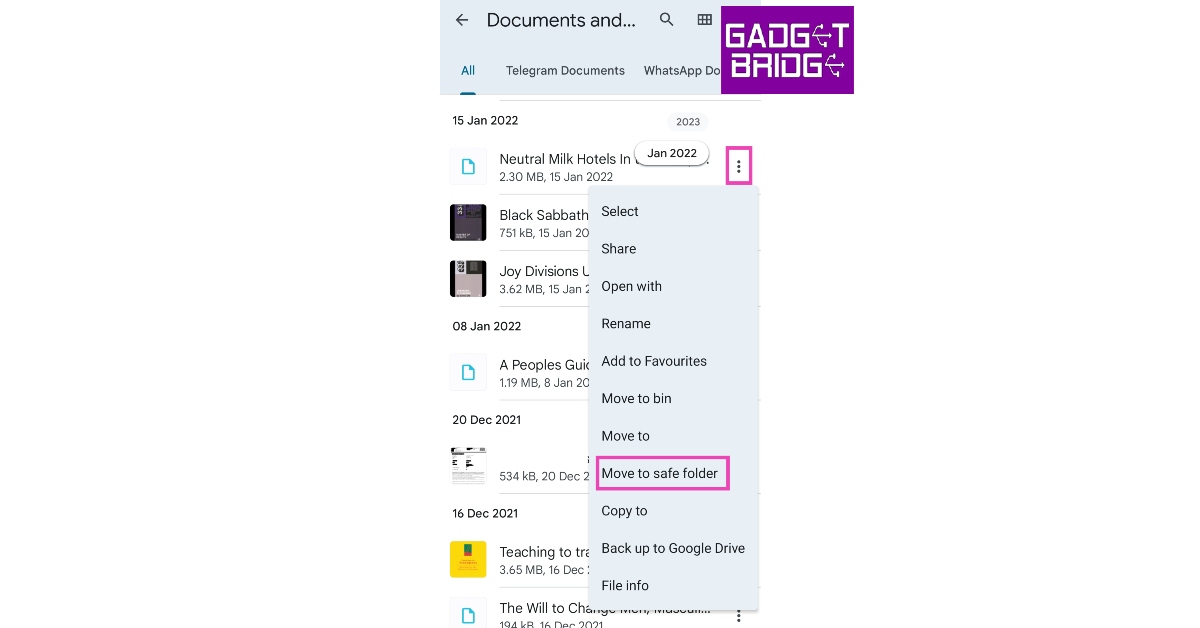 Trinn 4:Gå til filen eller dokumentet du vil sikre, og trykk på ellipsene (tre prikker) ved siden av den.
